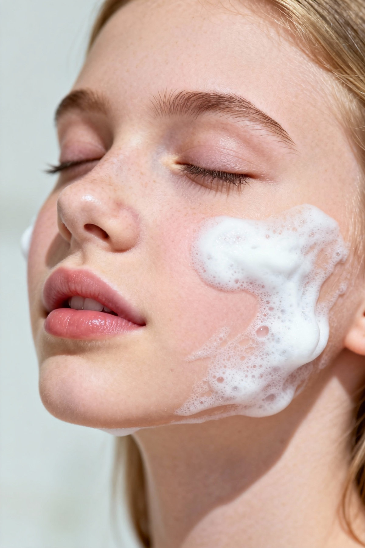 It is representing technology, purity, and transformation. The concept visualizes how Voshbon’s granule-to-foam technology reimagines skincare — weightless yet powerful, modern yet essential.