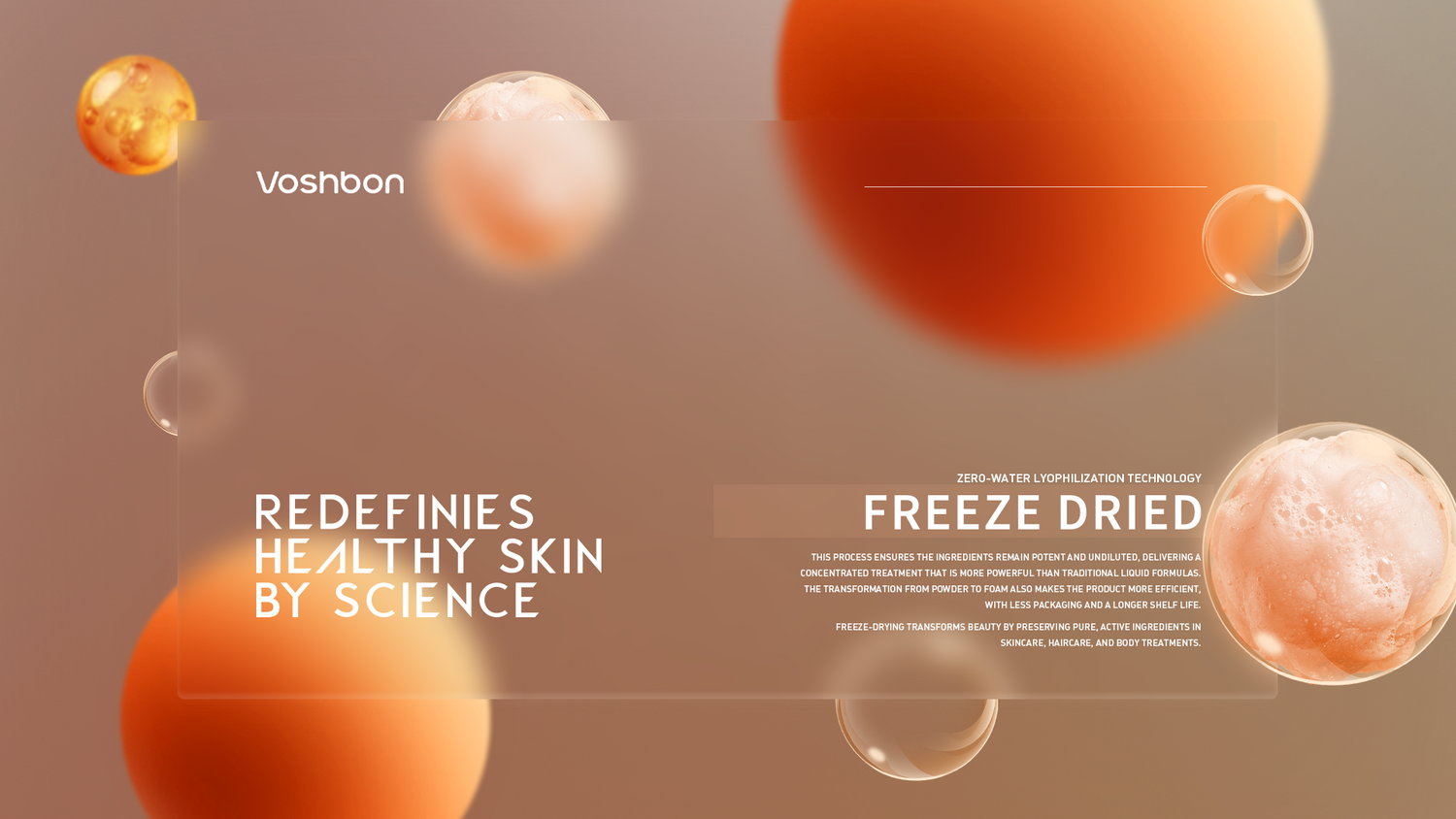 It is representing technology, purity, and transformation. The concept visualizes how Voshbon’s granule-to-foam technology reimagines skincare — weightless yet powerful, modern yet essential.