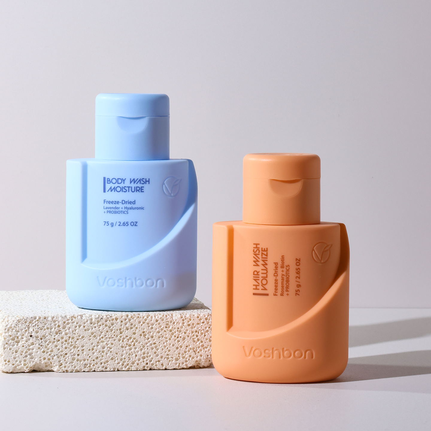 Yes. The freeze-dried, water-free format is leak-proof, TSA-compliant, and stable across temperatures. 75g of Voshbon equals 750ml of traditional liquid products, making it perfect for carry-on luggage, business trips, or camping.